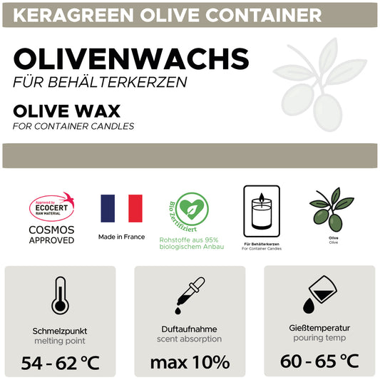 Bio-Olivenwachs für Behälterkerzen 'Keragreen Olive Container'