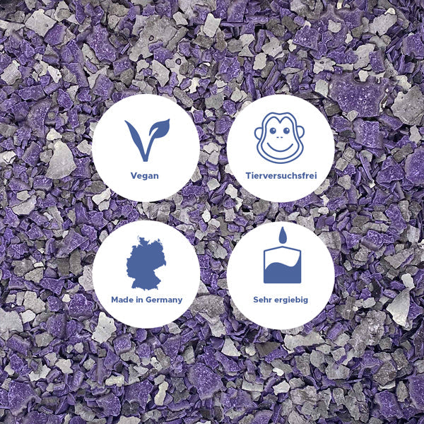 Our colors are produced in Germany and consist of a mixture of color pigments and dyes, which create brilliant colors and strong tones in your candles without having too much of an impact on the burning behavior of your candle. The candle colors can be used for any natural wax (rapeseed wax, soy wax and sunflower wax, sometimes also beeswax), but also paraffin, stearin and palm wax mixtures, and come in practical, resealable bags made from corn starch that do not harm the environment.