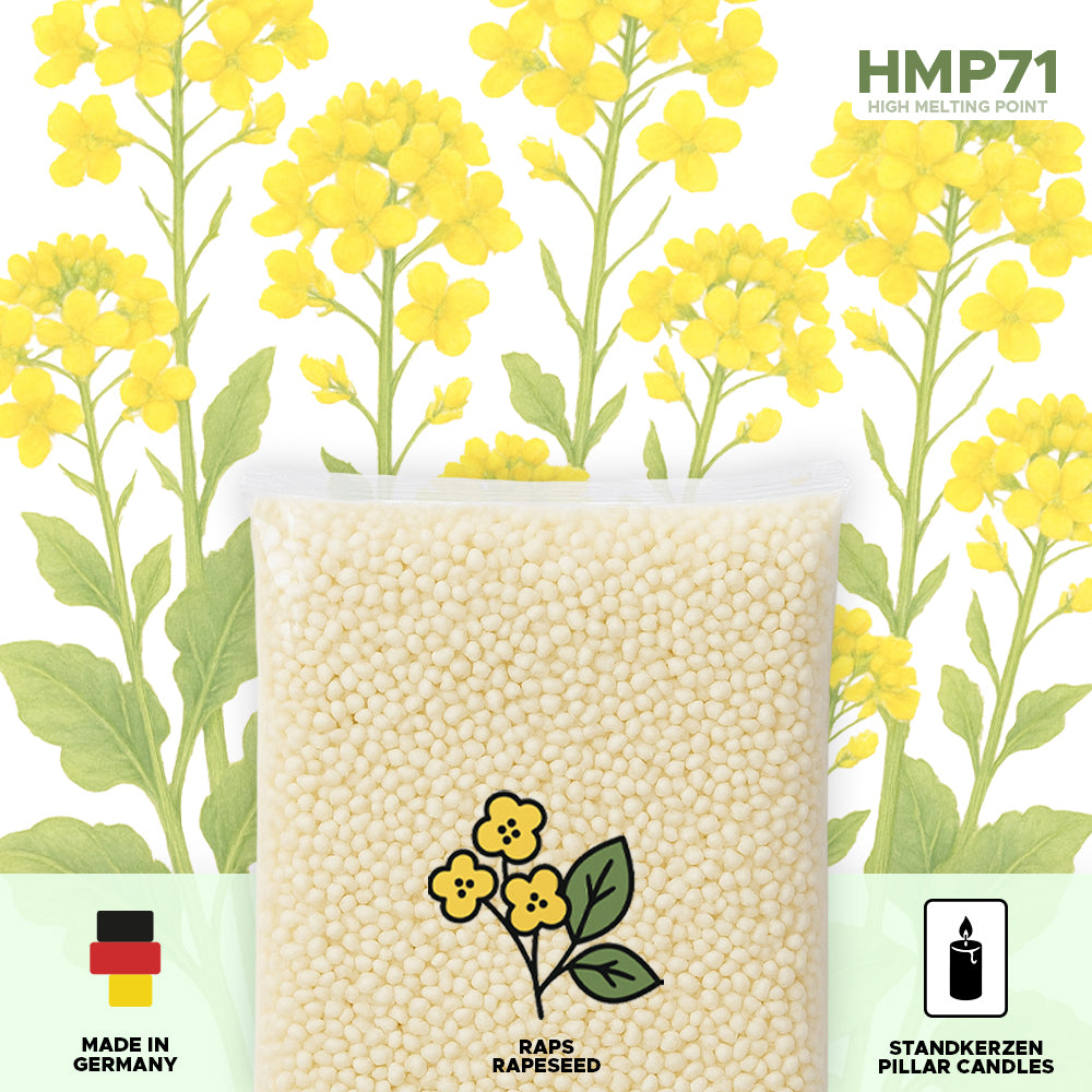 Nos pastilles de cire de colza sont fabriquées à partir d’huile de colza naturelle hydrogénée. La cire de colza est un excellent support pour les huiles parfumées car elle se caractérise par sa capacité de rétention particulièrement bonne pour les parfums. C’est précisément lorsqu’il brûle qu’il développe tout son arôme. La cire de colza est donc particulièrement adaptée au moulage de bougies ou de bougies piliers . Il brûle également sans laisser de résidus et laisse de l'air pur dans la pièce. Les pastilles de cire de colza sont idéales pour verser des bougies, des sculptures et des fondants parfumés sont entièrement compatibles avec notre gamme de colorants pour bougies et d'huiles parfumées .